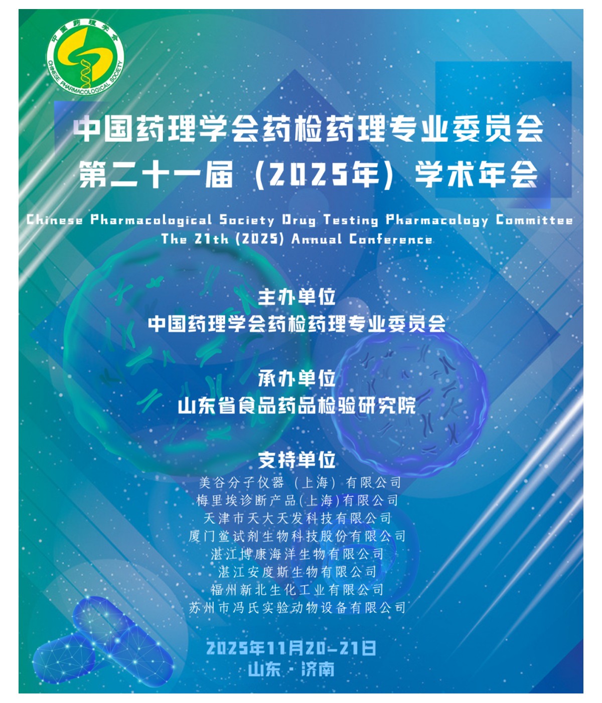 2025年11月20日—21日,中國藥理學(xué)會藥檢藥理專業(yè)委員會第二十一屆(2025年)學(xué)術(shù)年會在山東順利召開本次大會為總結(jié)我國藥檢藥理領(lǐng)域研究所取得的成果,加強(qiáng)我國藥檢藥理新成就和新經(jīng)驗(yàn)的交流,提高藥物有效性和安全性的研究水平,促進(jìn)藥品高質(zhì)量發(fā)展