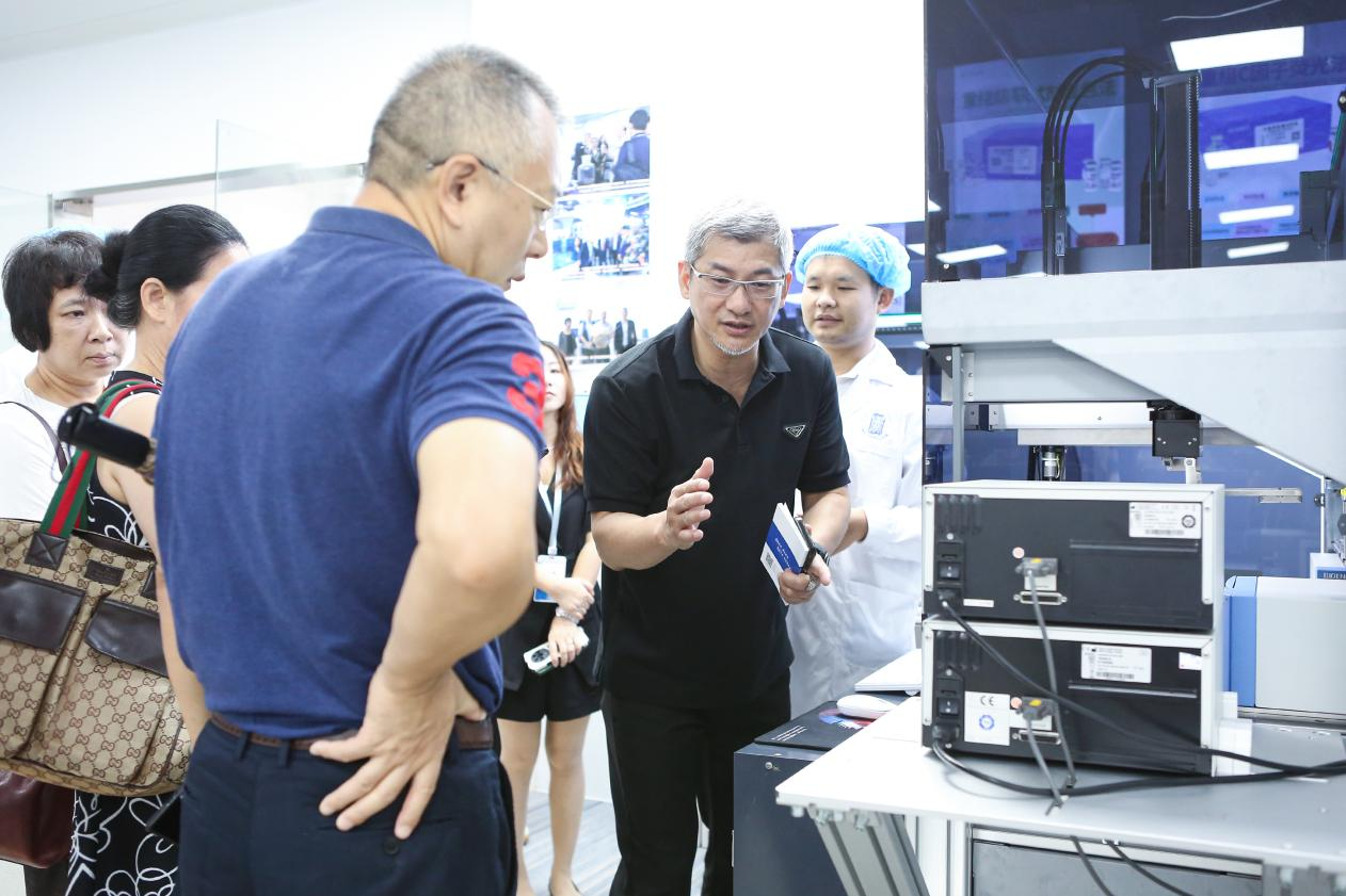 座談匯報(bào)后,中生藥協(xié)常務(wù)副會(huì)長兼秘書長胡文言、廈門市科技局處長莊如真、廈門市食藥檢院院長李玲玲、萬泰滄海董事長李世成一行參觀考察了我司全方法學(xué)“一條龍”內(nèi)毒素檢測產(chǎn)品系列,我司董事長吳尚毅重點(diǎn)展示了微量動(dòng)態(tài)顯色法鱟試劑盒、重組C因子熒光法試劑盒、重組級(jí)聯(lián)試劑顯色法試劑盒、單核細(xì)胞活化反應(yīng)測定MAT法系列產(chǎn)品及BIOENDO模塊化智能全自動(dòng)檢測機(jī)器人系統(tǒng)EndoMaster,我司可持續(xù)發(fā)展的內(nèi)毒素檢測解決方案獲得各位領(lǐng)導(dǎo)的認(rèn)可和好評(píng)。